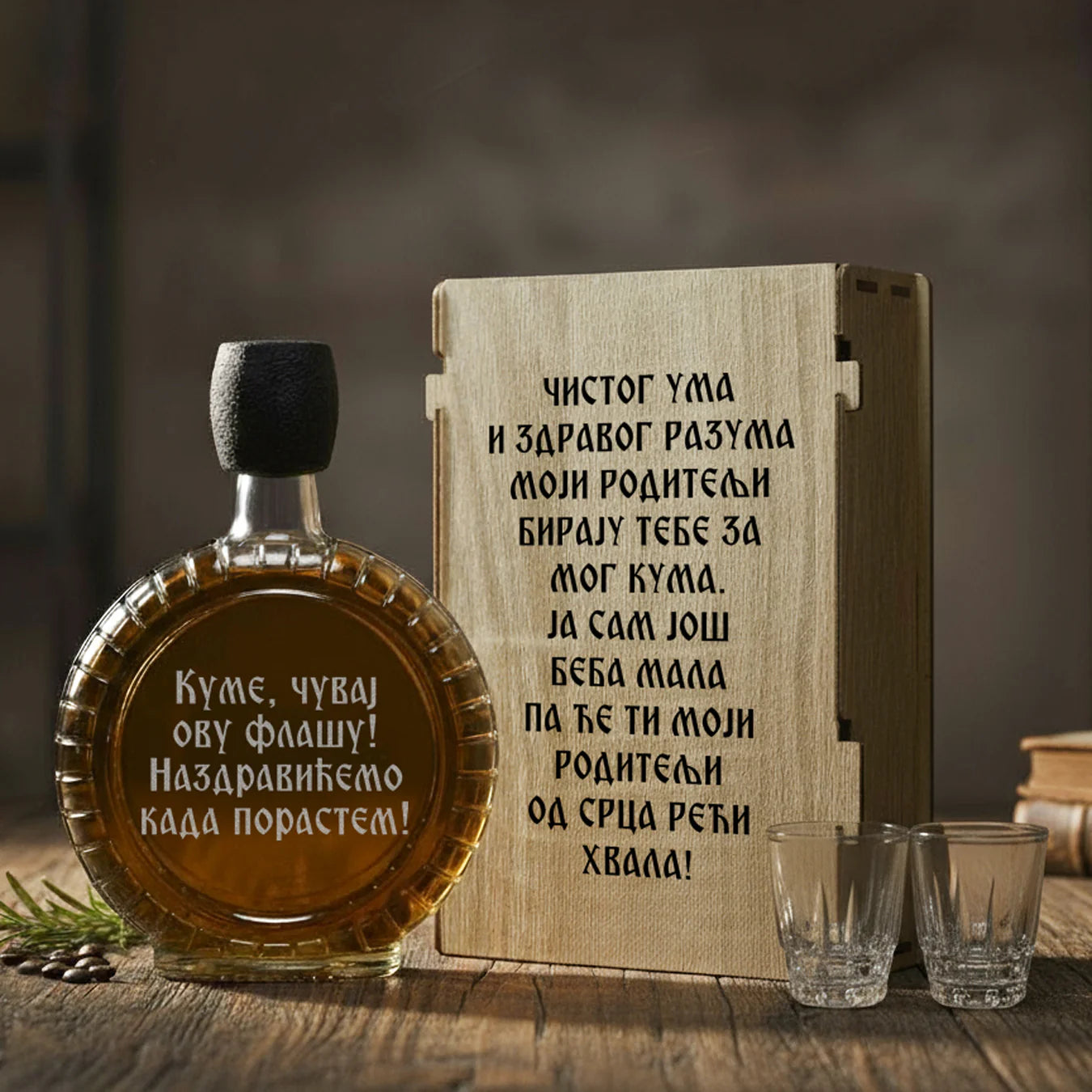 Poklon set za Kuma, sa 2 čašice (rakija nije uključena)