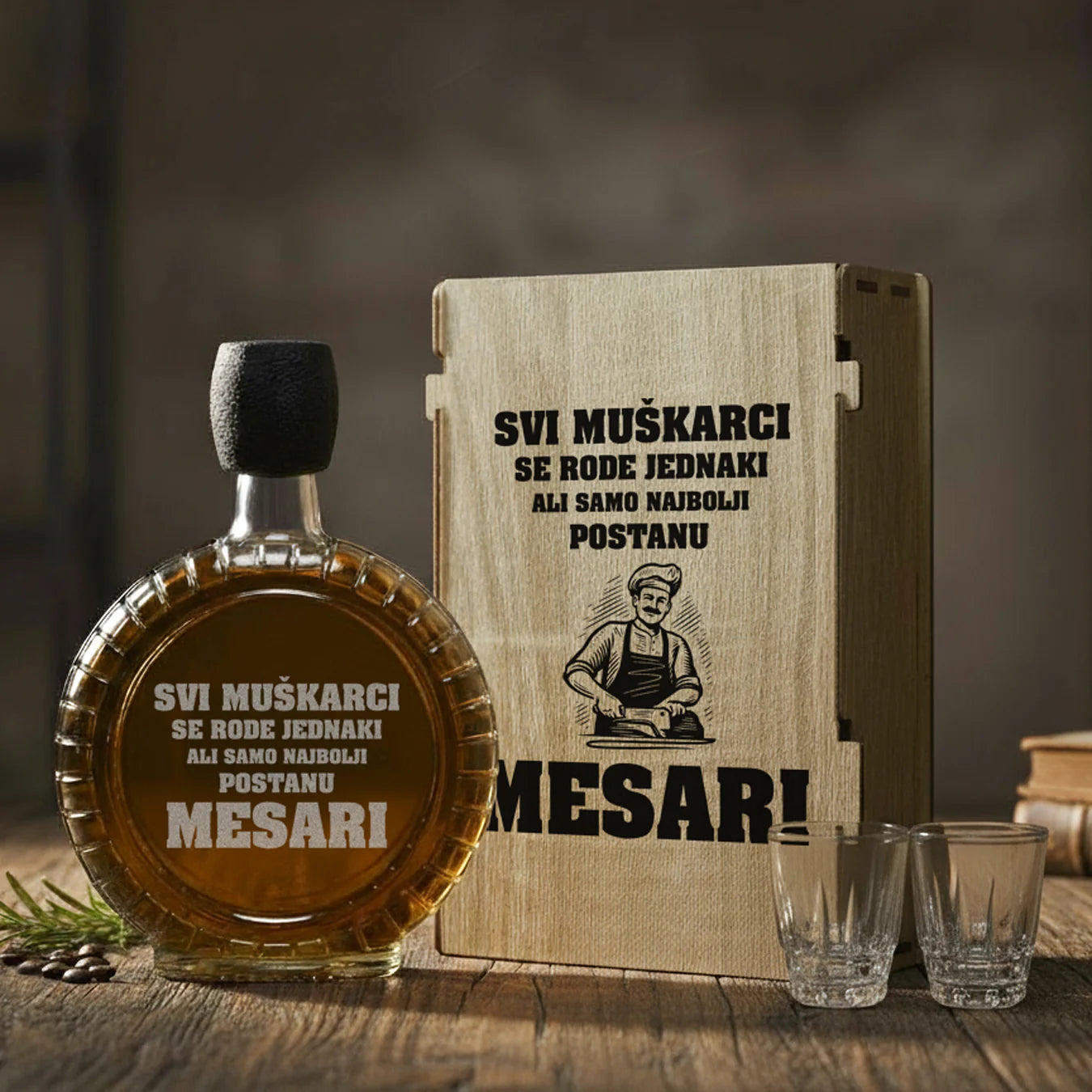 Poklon set za zanatlije - Mesari, sa 2 čašice (rakija nije uključena)