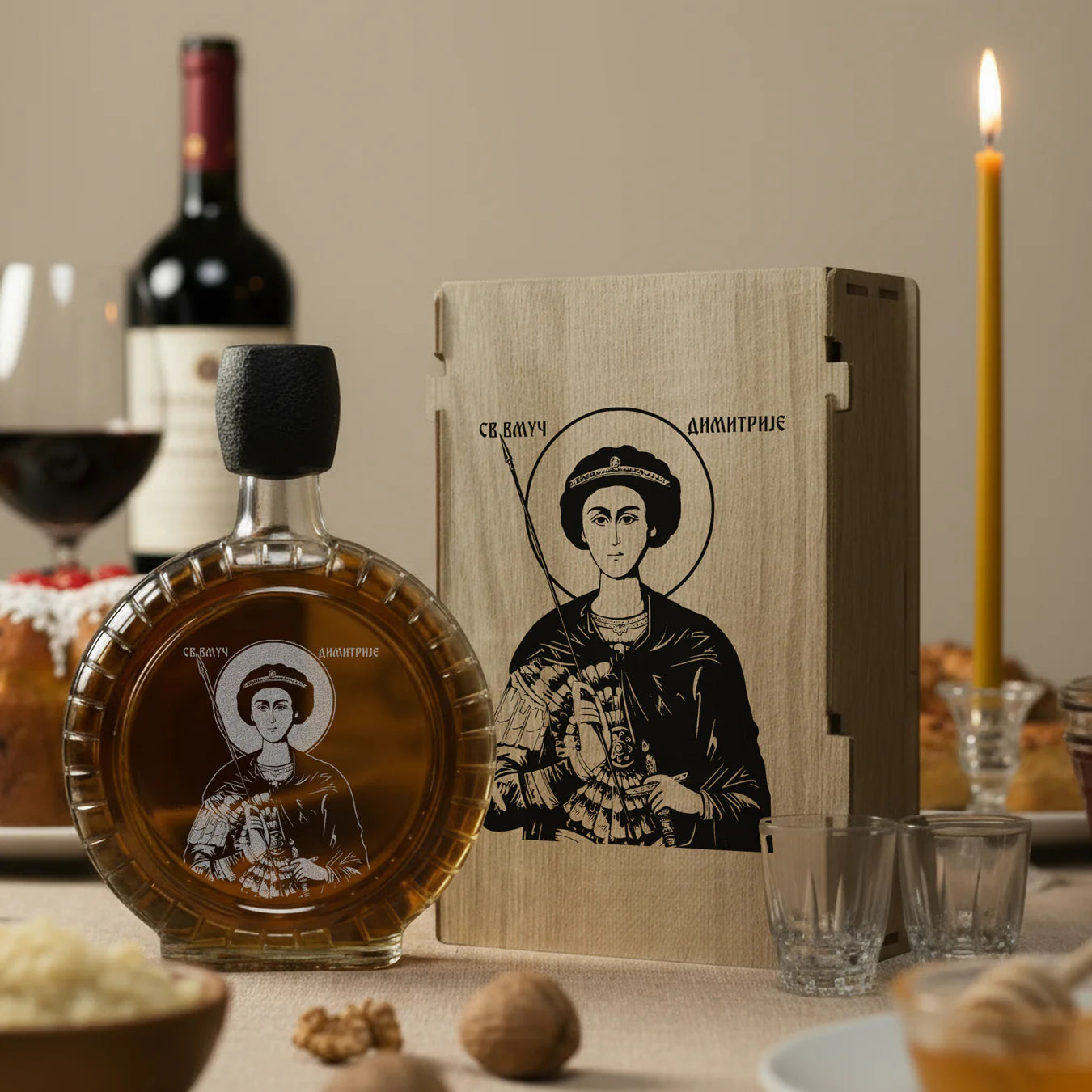Slavski poklon set Sveti Dimitrije - Mitrovdan, sa 2 čašice (rakija nije uključena)